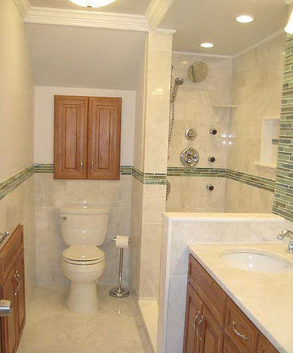 卫浴间空间极为小,淋浴间的设计,完全采用隔断墙,将区域独立。区域并没有封死,隔断适当增减设计,保证了小卫浴间的通透感,让其不会太显拥挤。