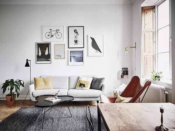 3、可以创造视觉焦点,来转移人走进房间后的注意力。比如比较大的挂画,一个亮眼的颜色的家具。