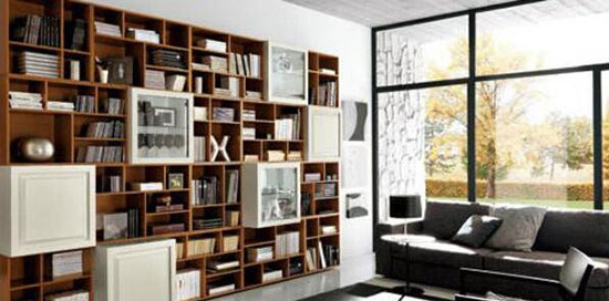 收纳重点:一体式书架柜格子分类显整齐。