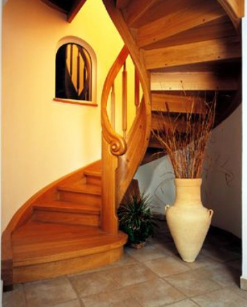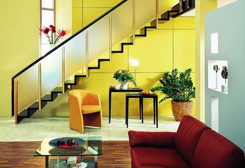 位于客厅的楼梯,可以结合客厅的功能需求来规划楼梯下的空间,同时要达到空间的和谐,可以从感观上入手。如果空间允许的话,可以设计一个室内山水景观。山水不但能让室内充满自然气息,同时也具有良好的寓意。另外还可以利用精美的工艺品和装饰品,为不起眼的楼梯下的角落作一番修饰,变为家居装饰中吸引眼球的角落。