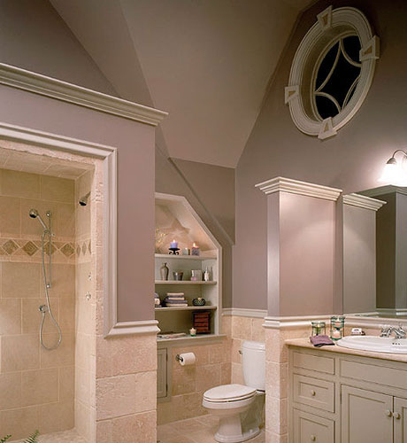 卫浴间空间极为小,淋浴间的设计,完全采用隔断墙,将区域独立。区域并没有封死,隔断适当增减设计,保证了小卫浴间的通透感,让其不会太显拥挤。