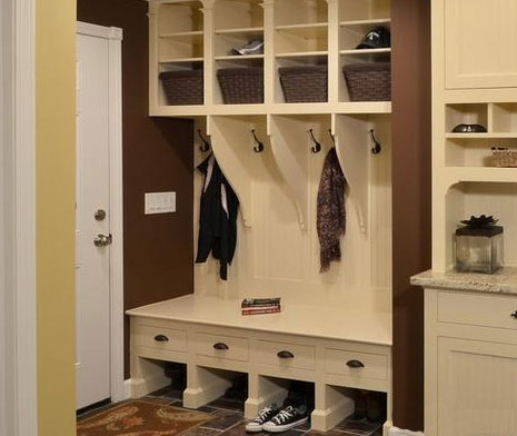 省钱要点:若家中需要较大的鞋柜,也可以用高的鞋柜来取代玄关柜。怕大面的鞋柜会造成压迫感,鞋柜中间挖空兼作玄关柜,放个漂亮的花盆,既可作装饰又可作为钥匙盒使用。虽然高的鞋柜比矮柜来得贵,但相对收纳空间也比较大。