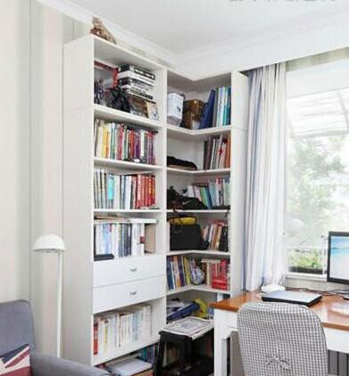 装饰提示:转角等变角落是一般家里堆放杂物的地方,这样做虽然方便但会破坏美感。摆上柜子放上几本经常看的书,这里就成了一个小小的学习角落。装点一些小饰品更加显得安静优雅。