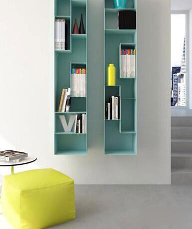 装饰提示:墙壁上的收纳书柜是可以达到充分利用空间的效果,其实格子的设计也用不上那么规规矩矩,把收纳玩的漂亮起来才是最终目的。