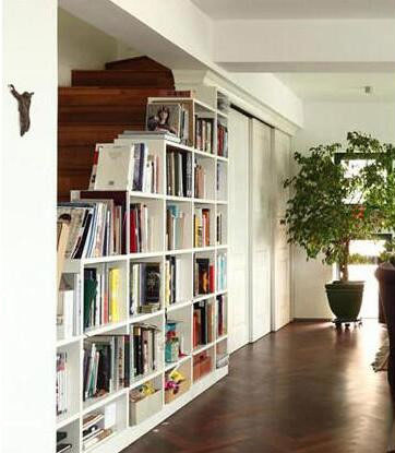 收纳重点:书架变复式楼梯墙面