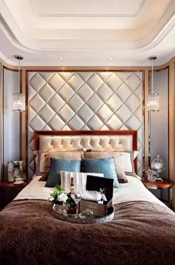 如果是身处闹市区周边环境非常吵那么在装修卧室墙面时可以和吊顶一样采取增加隔音材料的方法。现在比较常见的做法是在床头增加一块软包背景墙虽然主要作用在装饰和防碰撞方面但同时也可以起到一点吸音、隔音的效果。
