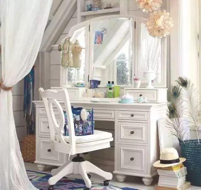 一般以美容为中心的都以梳妆台为主要设备可按照空间情况及个人喜好分别采用活动式、组合式或嵌入式的梳妆家具形式;